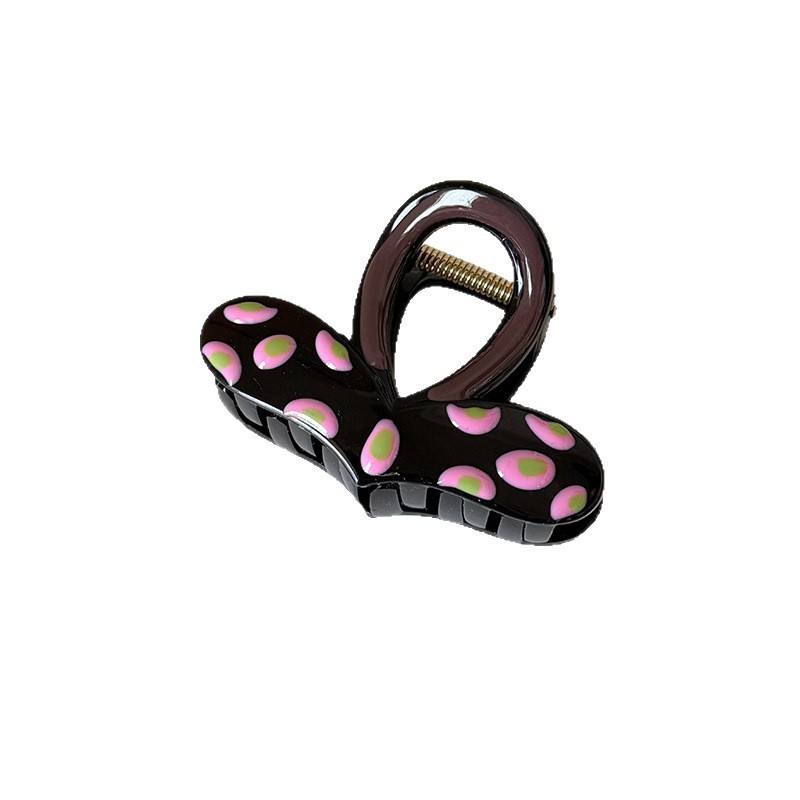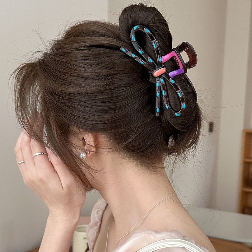 透明感のある素材に彩り豊かなドット柄をあしらい、まとめ髪を華やかに演出します。