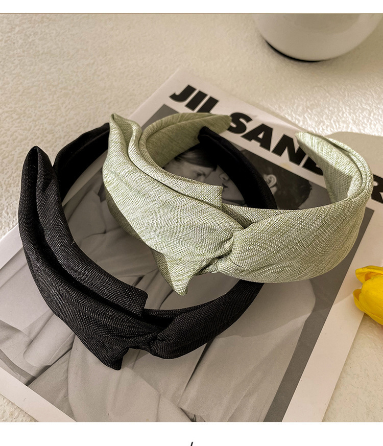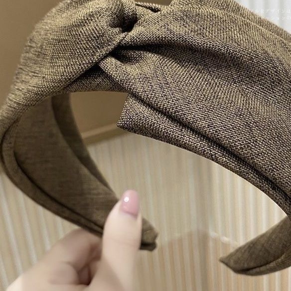 頭頂部で優雅にツイストした結び目のデザインが特徴的なカチューシャで、装着するだけで華やかな印象に仕上がります。