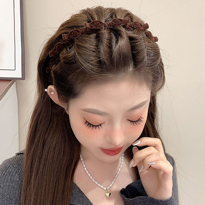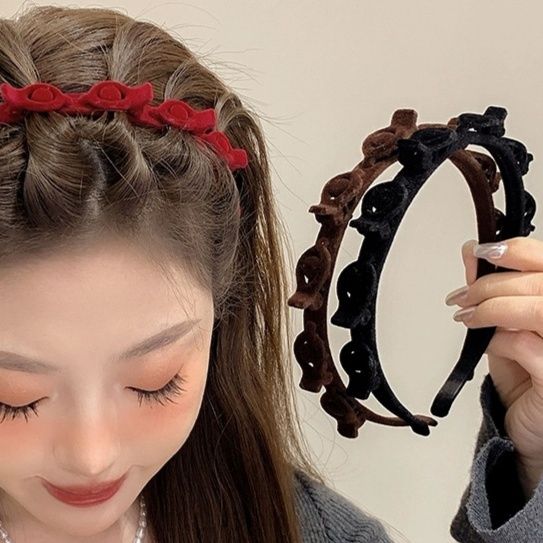 立体的な薔薇の彫刻が施されたこのカチューシャは、頭頂部を華やかに飾ります。