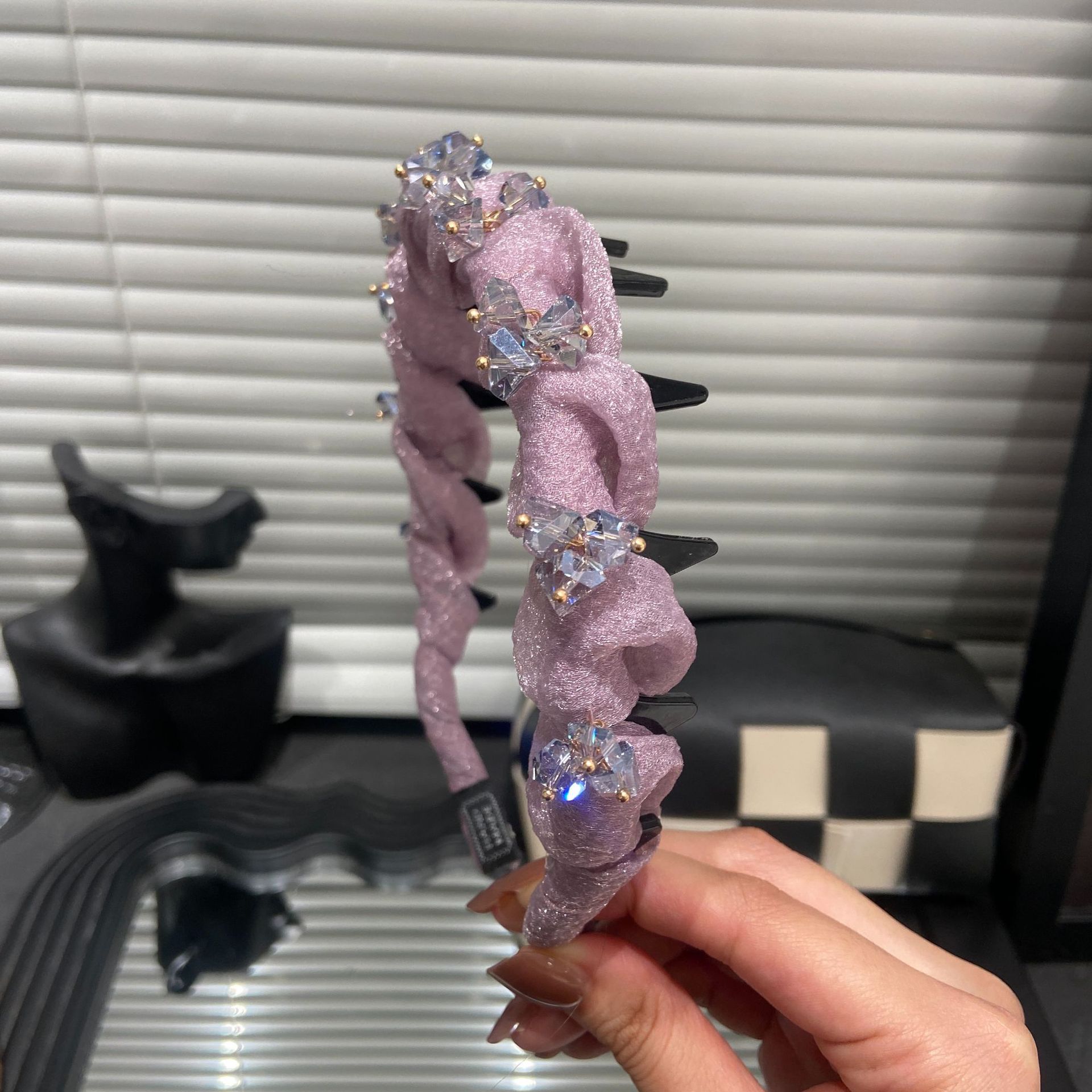 カチューシャの表面に透明感のあるクリスタルビジューを贅沢に散りばめ、上品な輝きを演出します。