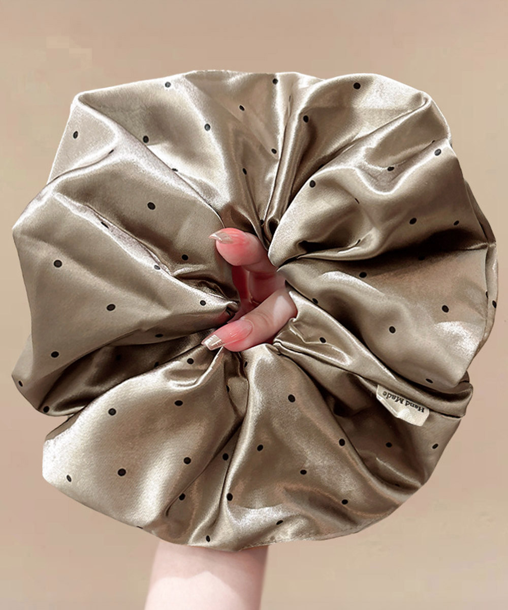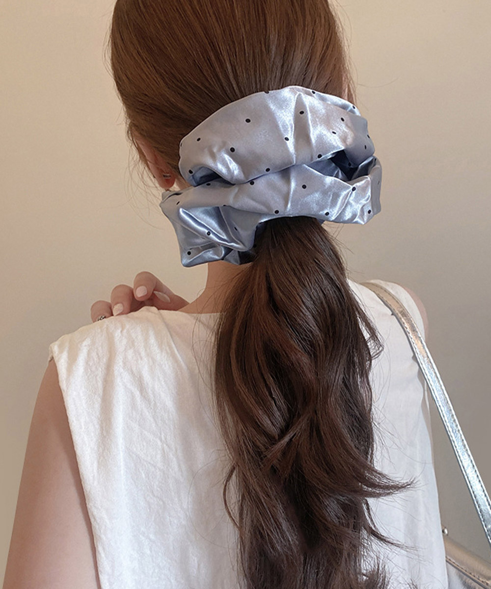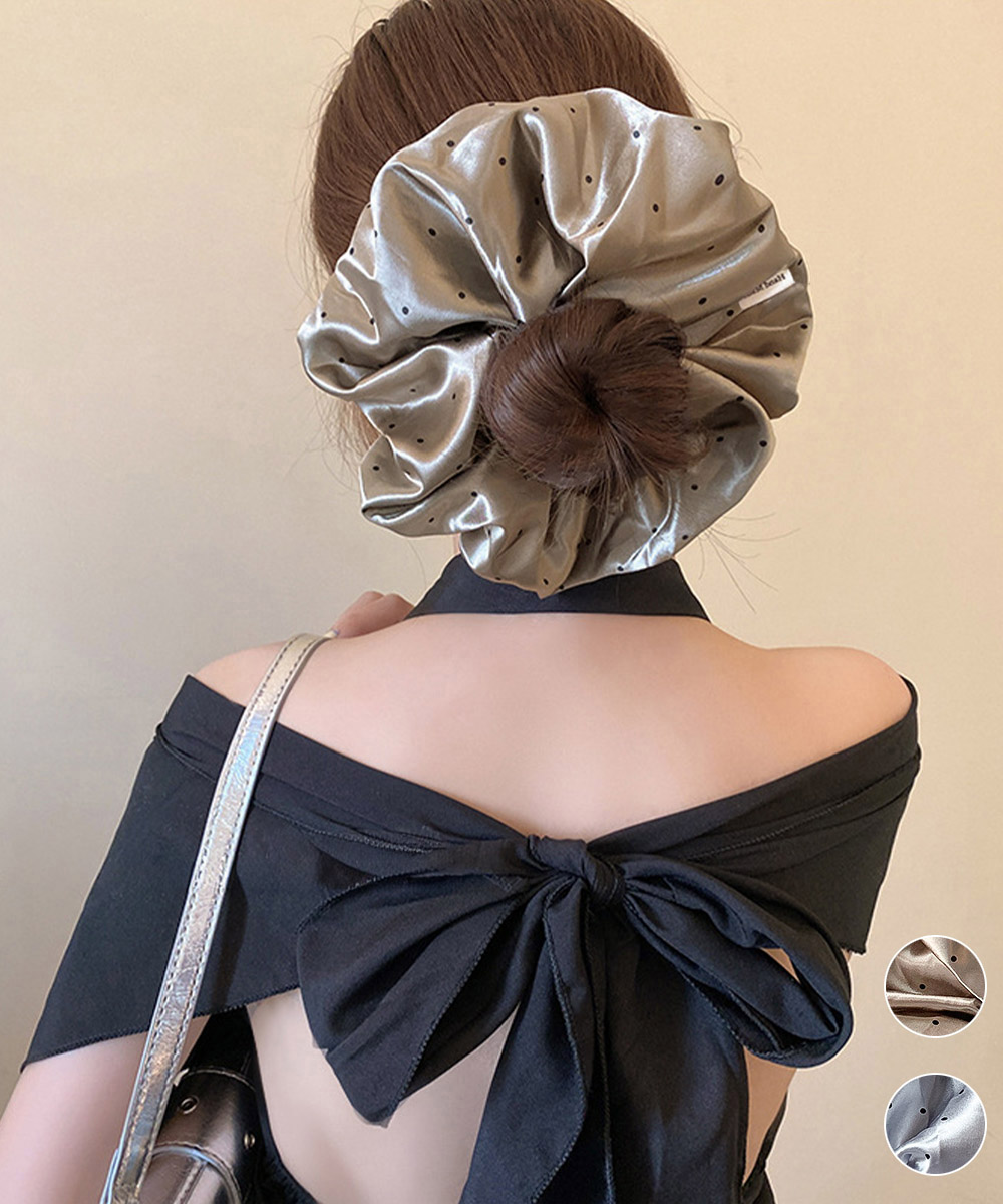 光沢のあるサテン素材を使用した、ボリューム感たっぷりの大判シュシュです。