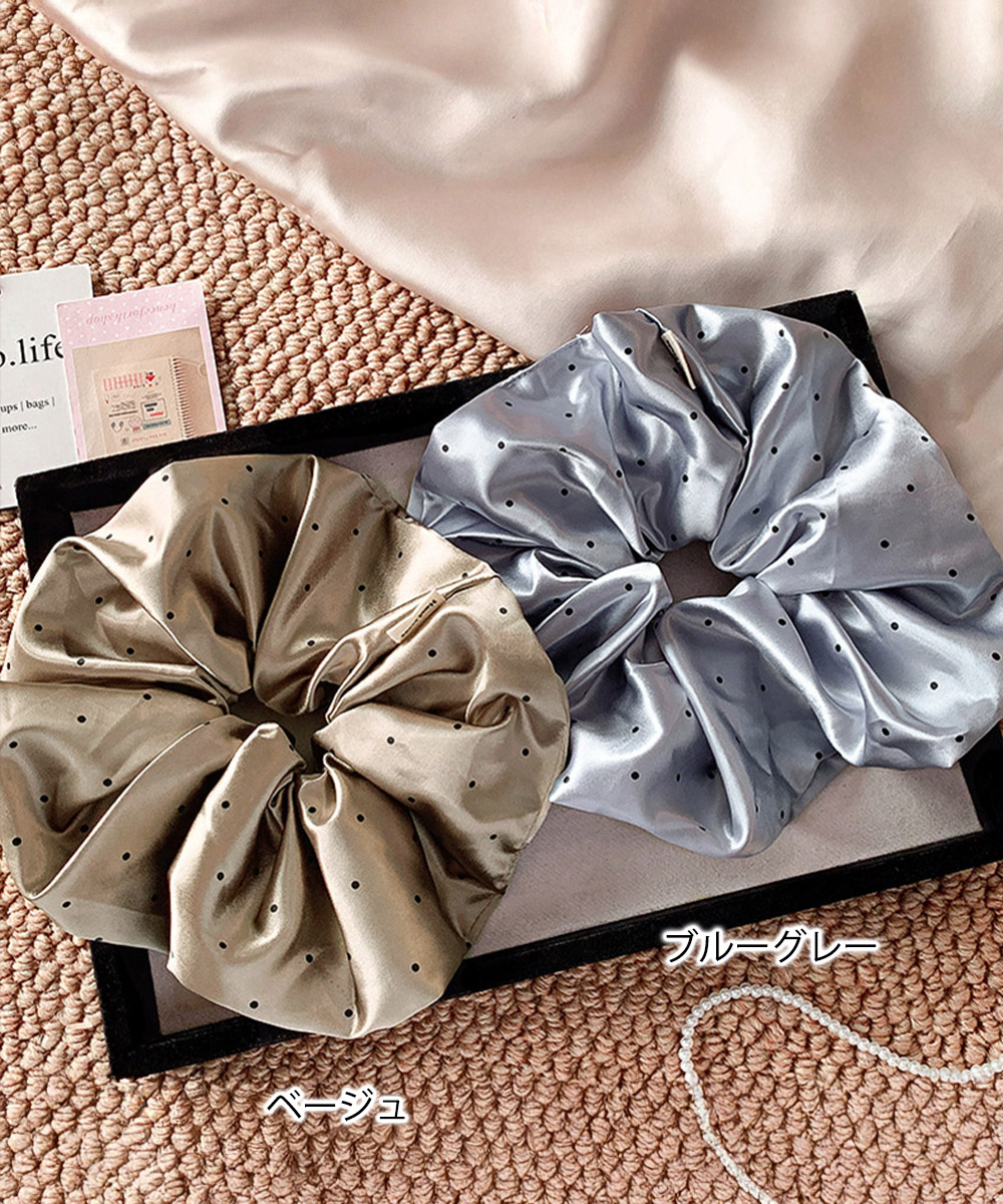 レディース ヘアアクセサリー おしゃれ髪飾り 女子会 パーティー ヘアアレンジ 髪留め 可愛い オルチャン 簡単まとめ髪 お団子ヘアシュシュ まとめ髪ヘアグッズ 大人シュシュ大きめ サテン素材を使用した、ボリューム感のある大判シュシュ。 上品な光沢とドット柄がポイントで、まとめ髪にプラスするだけで一気にこなれた印象に。 ワンピースやオフショルダートップスと合わせて、バックスタイルを主役にしたスタイリングがおすすめ。 素材:ポリエステル100% カラー:ベージュ/ブルーグレー ゴム直径:約4cm
