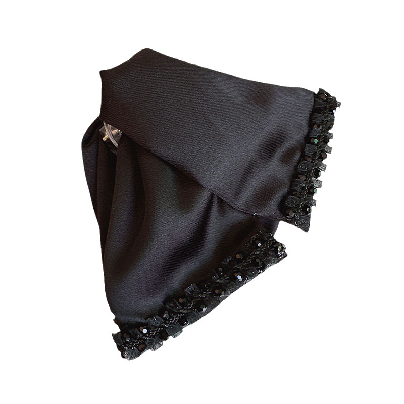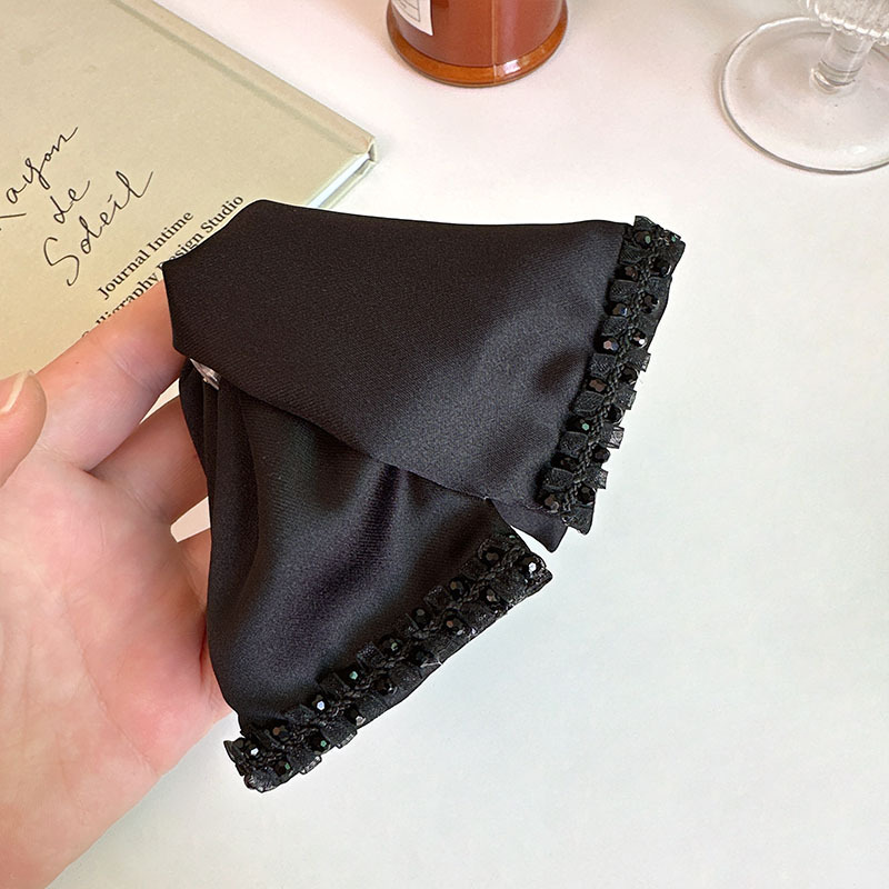 エレガントなサテン素材に繊細なレース装飾を施した高級感あふれるシュシュです。