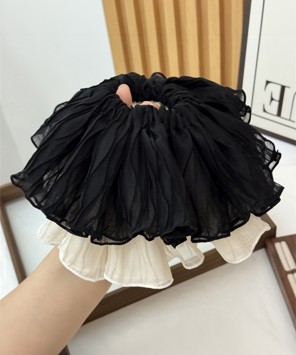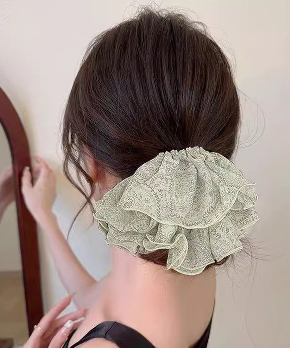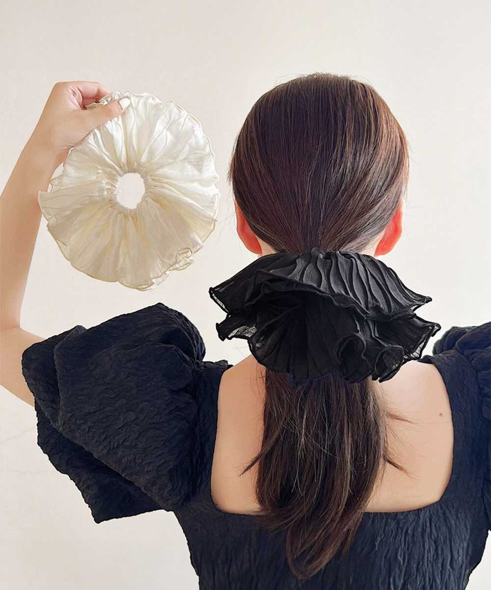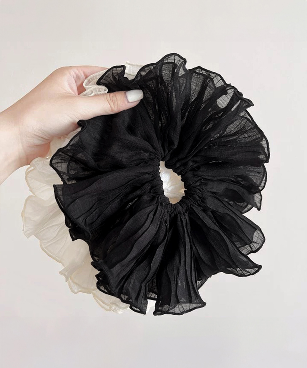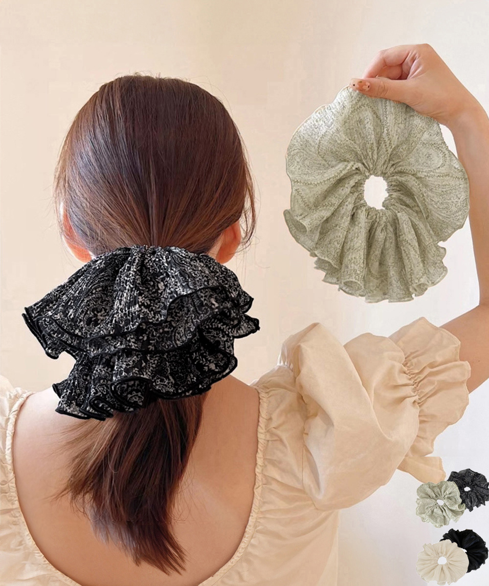 上品なフリルが魅力的なヘアアクセサリーのシュシュです。