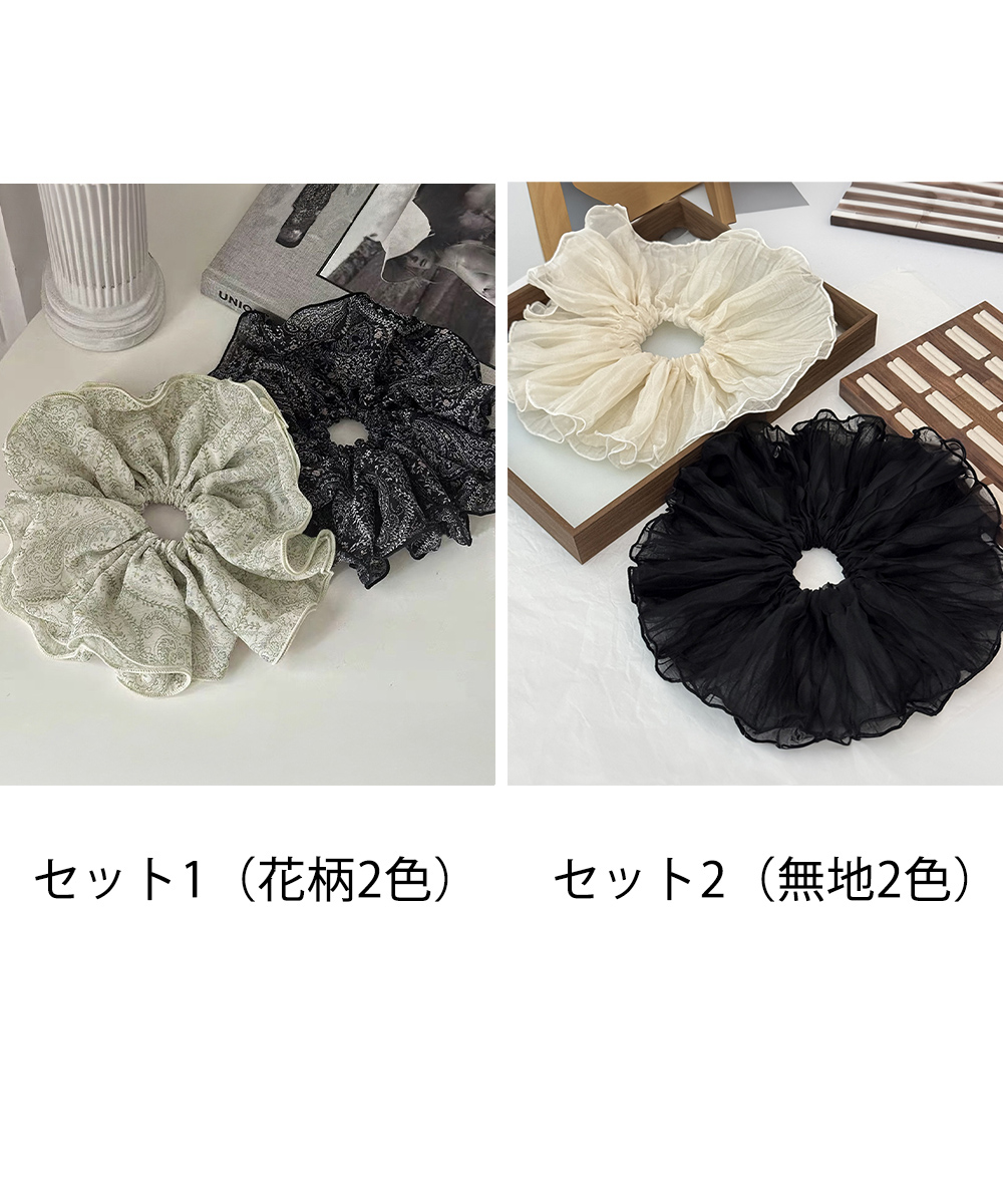 素材:ポリエステル カラー:セット1(花柄2色)/セット2(無地2色) サイズ:ワンサイズ ゴム直径:約5cm ※包装に関しての注意点:こちらの商品は激 安で販売しているため、化粧箱は付いていませんが、商品に傷付かないよう簡易包装で発送とさせていただきます。