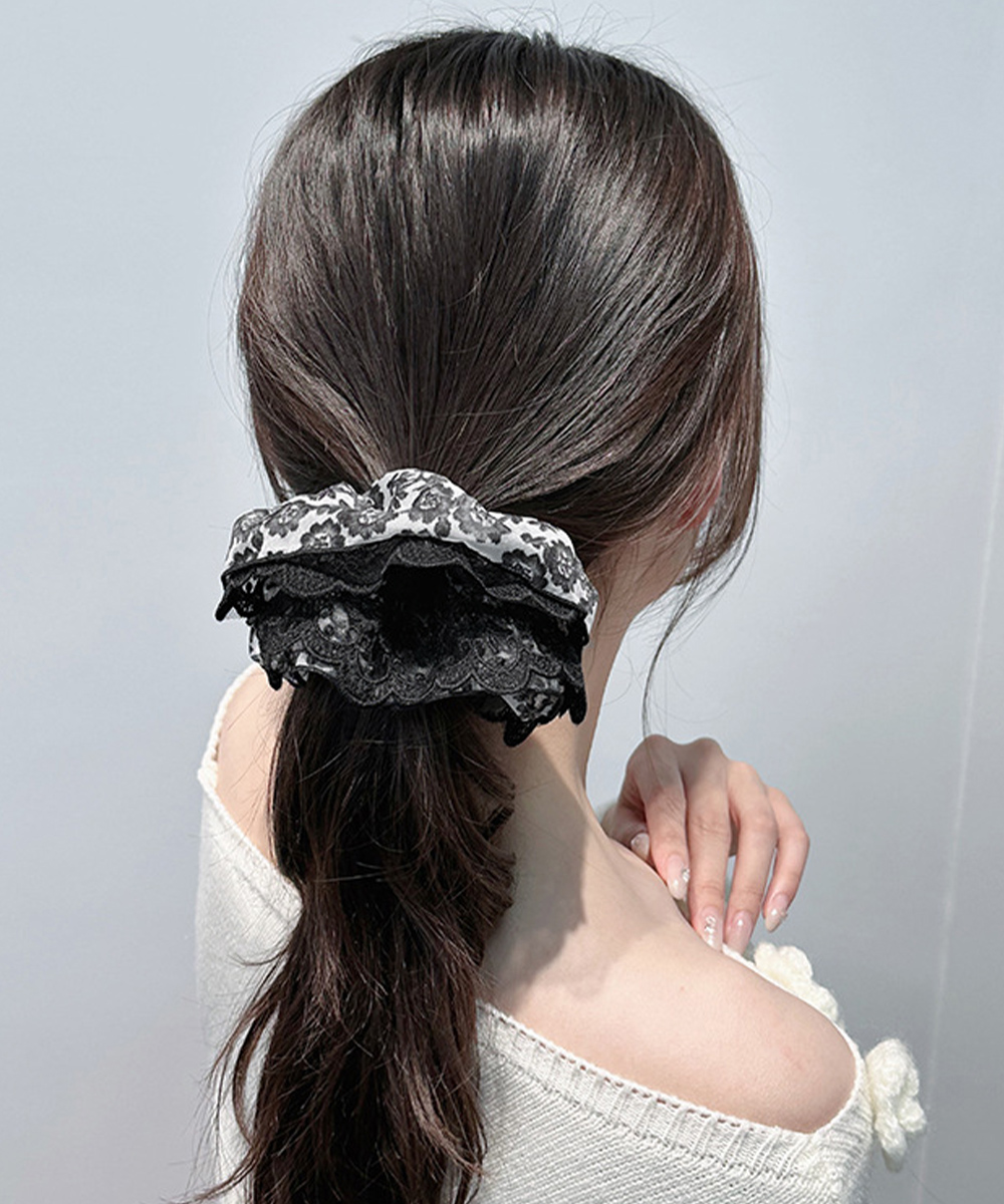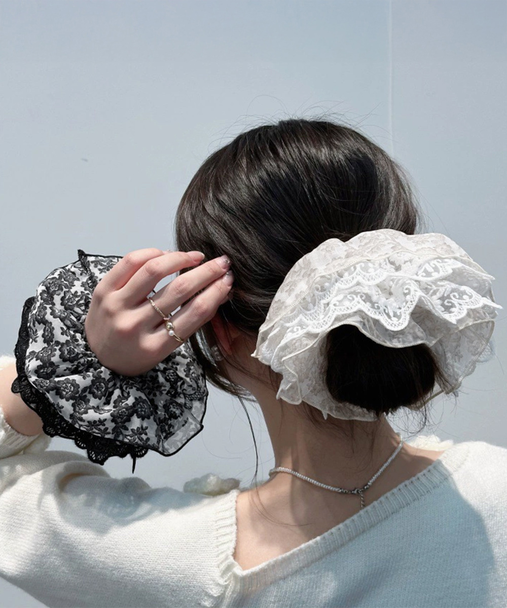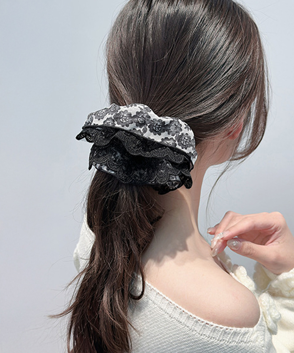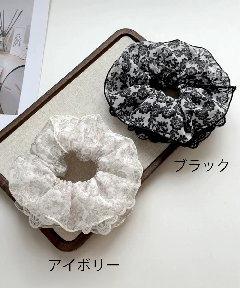 繊細な花柄レースが魅力的なボリュームたっぷりのシュシュです。