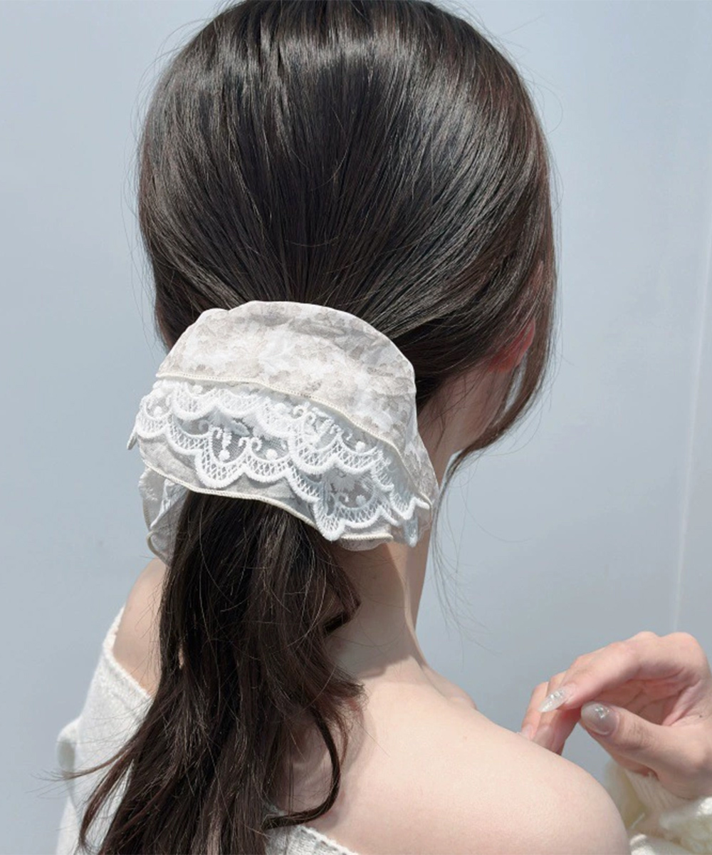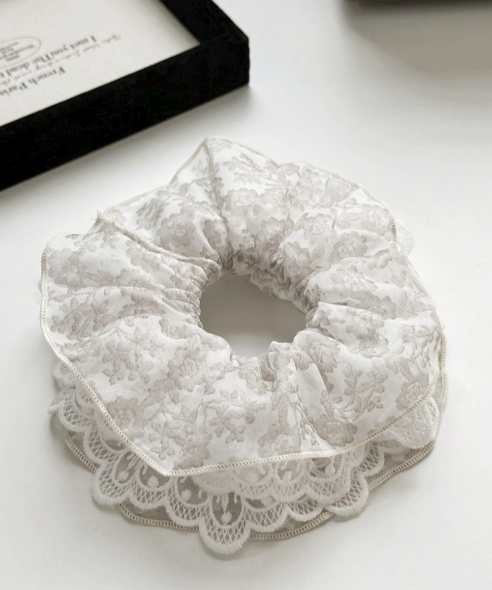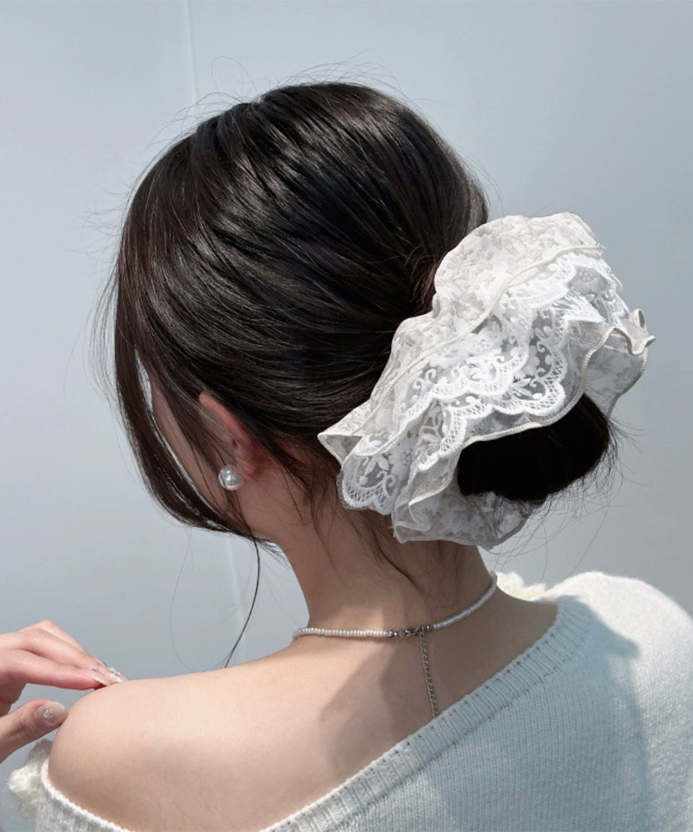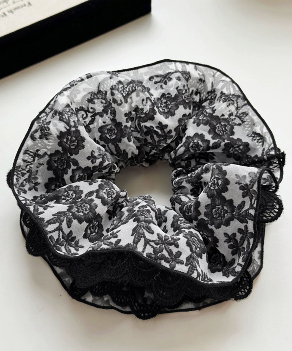 繊細な花柄レースが魅力的なボリュームたっぷりのシュシュです。