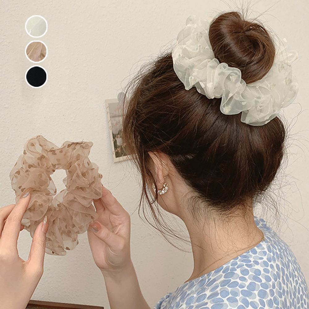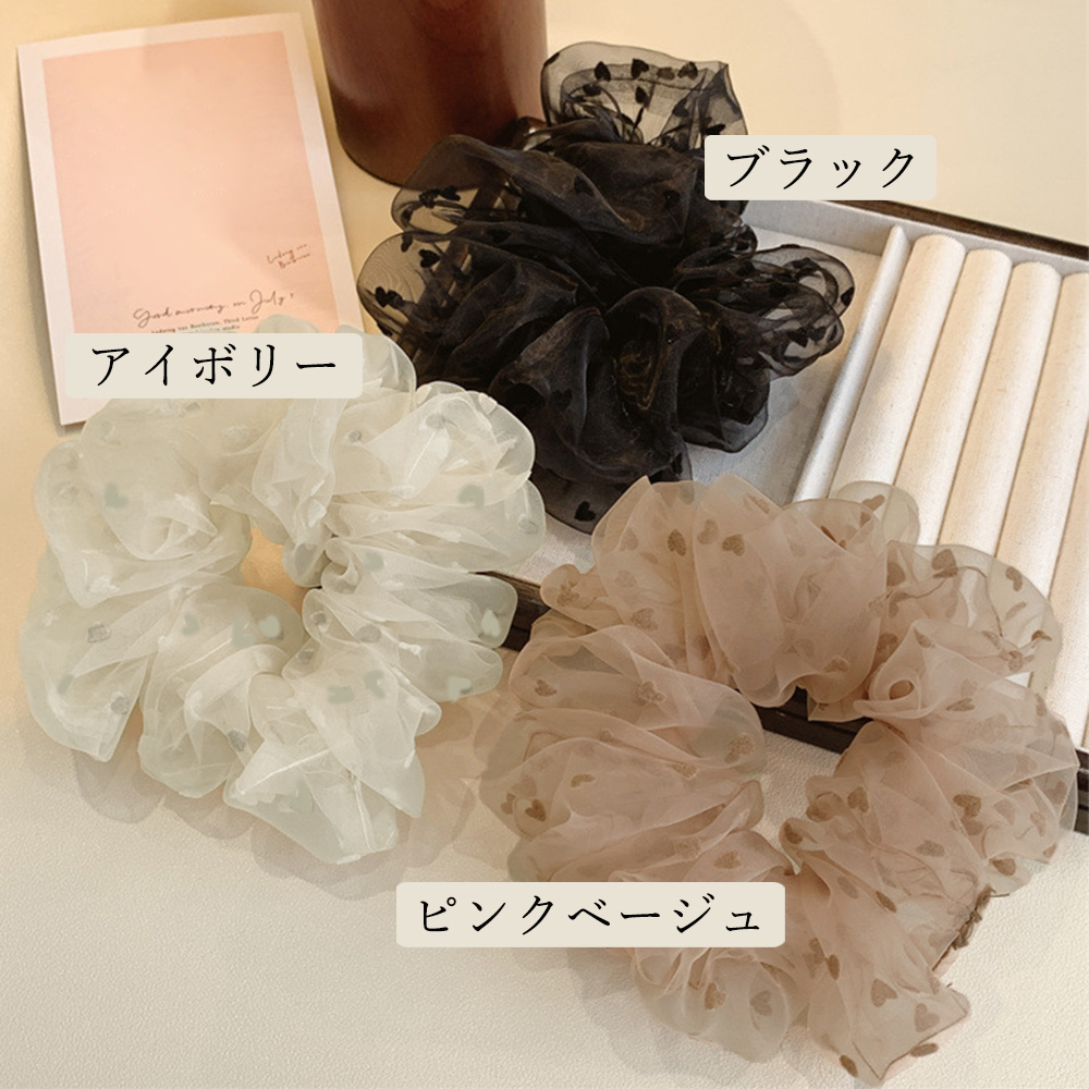 シンプルながらも存在感抜群のオーガンジーシュシュです。